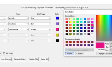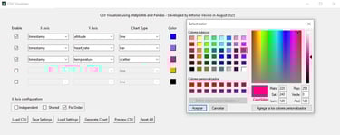 This app allows the user to create a variety of graphics from a .csv given. Personalized filters and even save your settings to use it with other files.